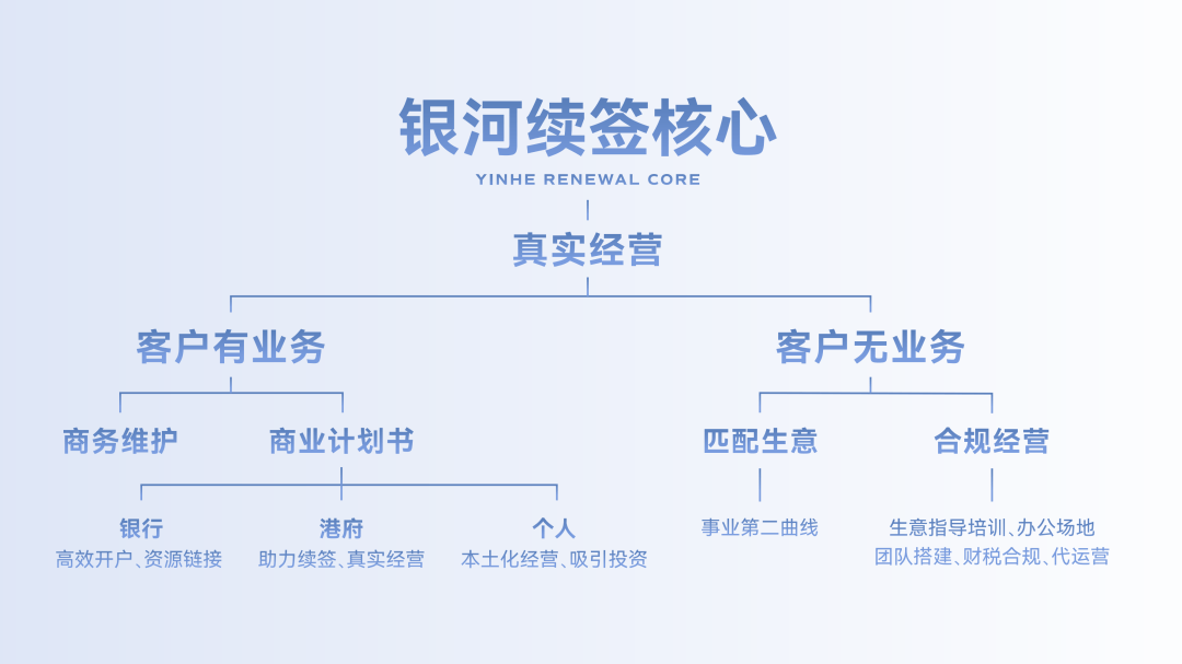 银河集团不只为客户供给身份打点、续签营业,还供给开公司、后代教育规划等等“一坐式”办事,让你省事省心。