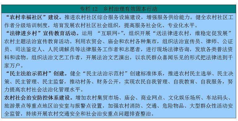 120。健全村级自治轨制。完美农村选举、决策、协商、办理、监视等轨制,健全村平易近会议、村平易近代表会议、村平易近议事会、村平易近理事会、村平易近监事会等,构成多条理下层协商款式。