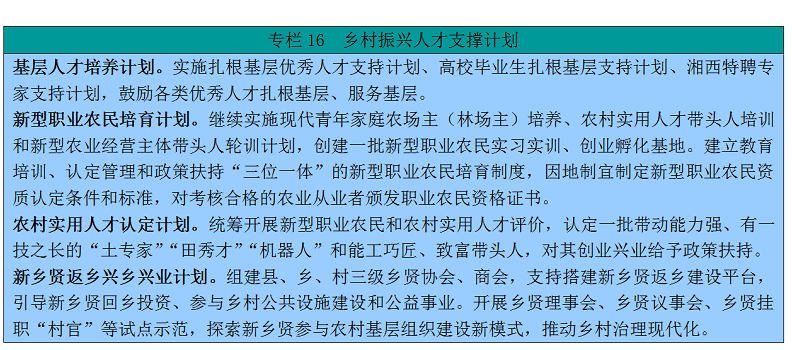 15。鞭策沉点区稳步成长。洞庭湖、湘中南的县市区,是村落复兴的沉点和从疆场。立脚农业资本丰硕、出产根本优良,成长特色劣势财产,大幅提拔农产物加工程度,加强根本设备扶植,鞭策农村财产、城乡融合成长。到2035年,根基实现农业农村现代化。